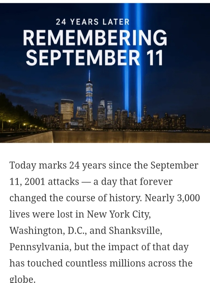- Egede Shedrack added 1 photos to the album: Remembering September 11: A Global Tribute,2025-10-05 22:43:02 - Translate -0 Comments 0 Shares 703 Views